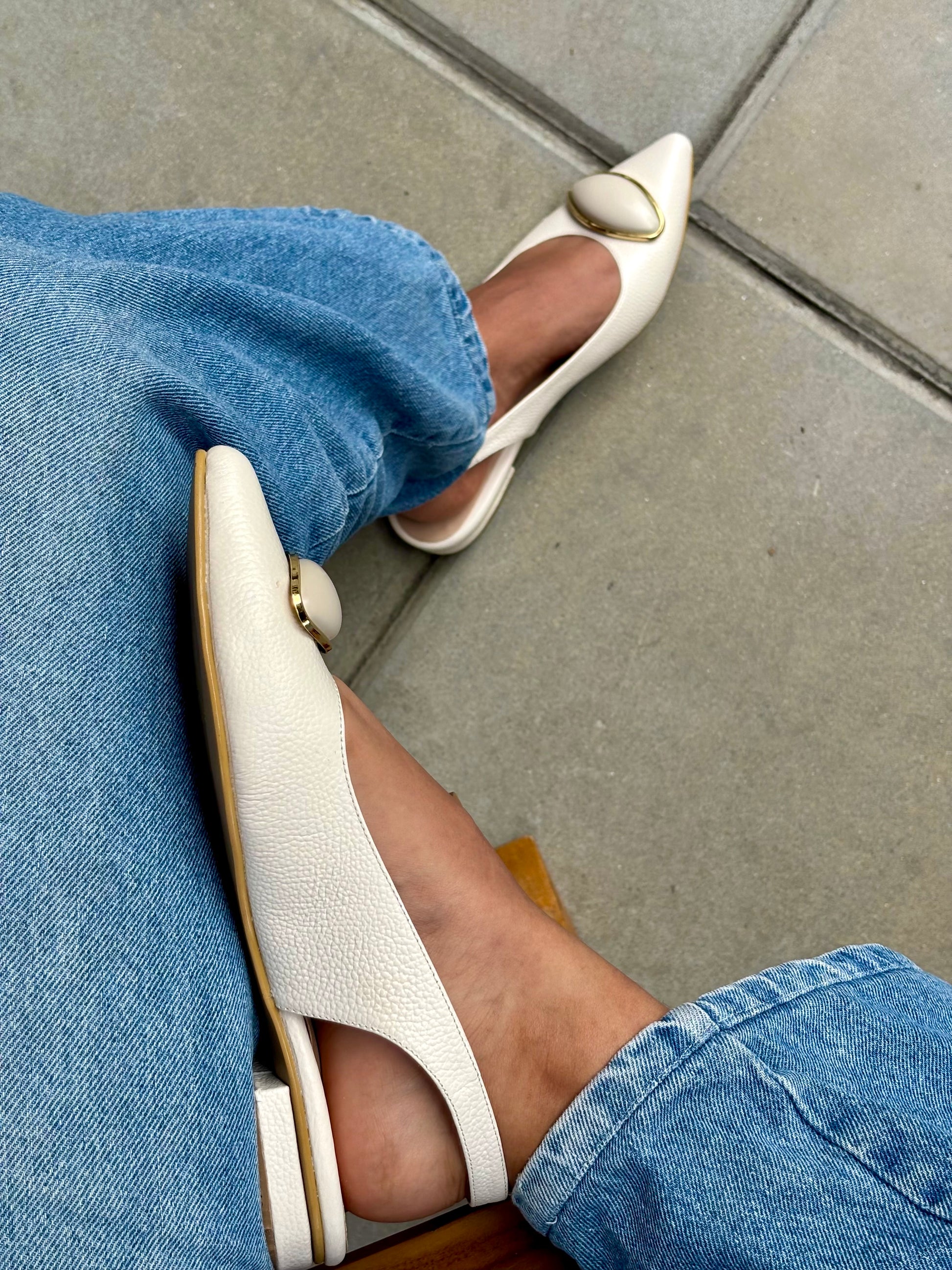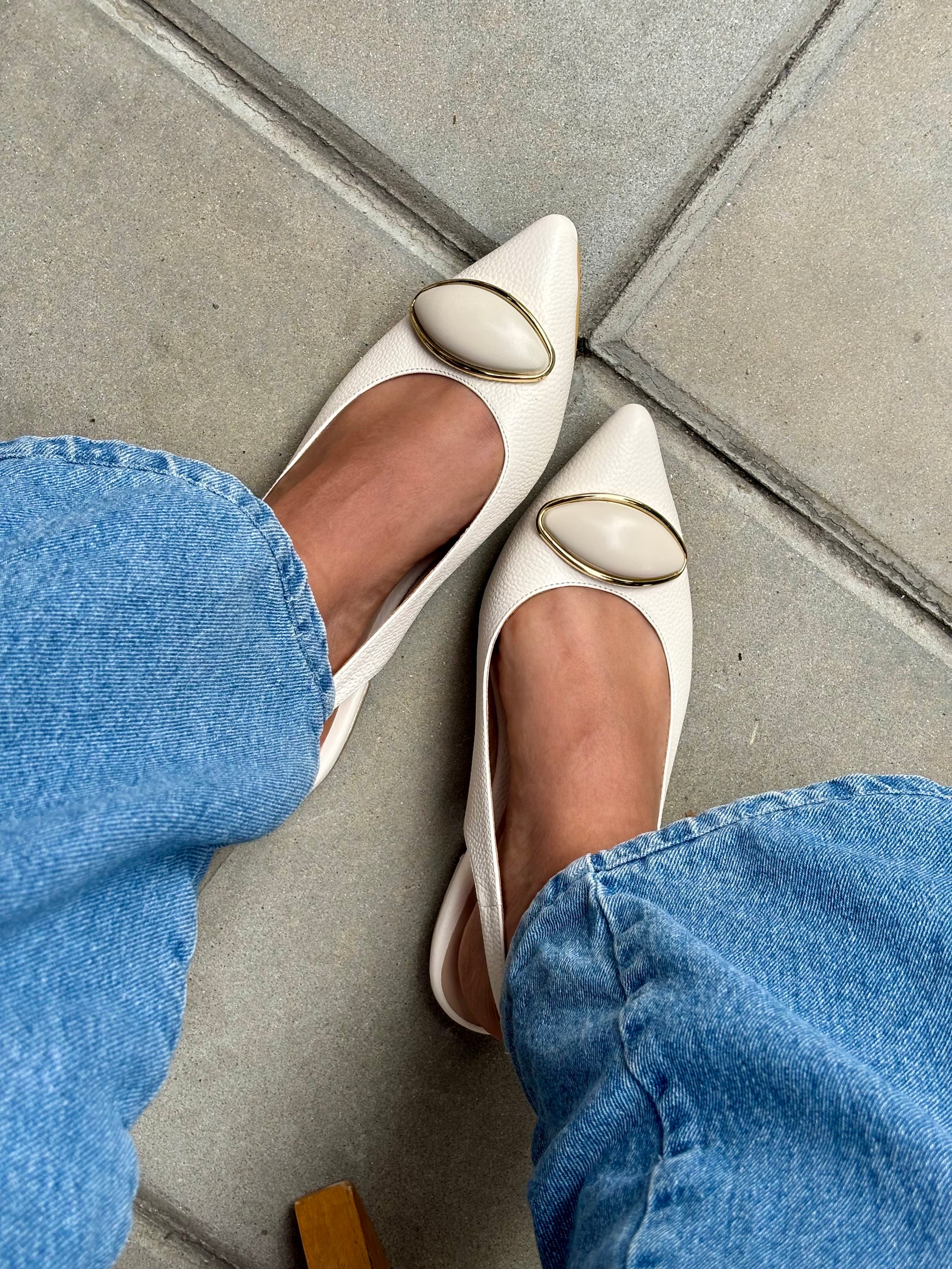 Unas baletas clásicas con adorno con contorno dorado que te harán lucir increíble. Elaboradas en 100% cuero. Su tacón es de altura 1 1/2.
