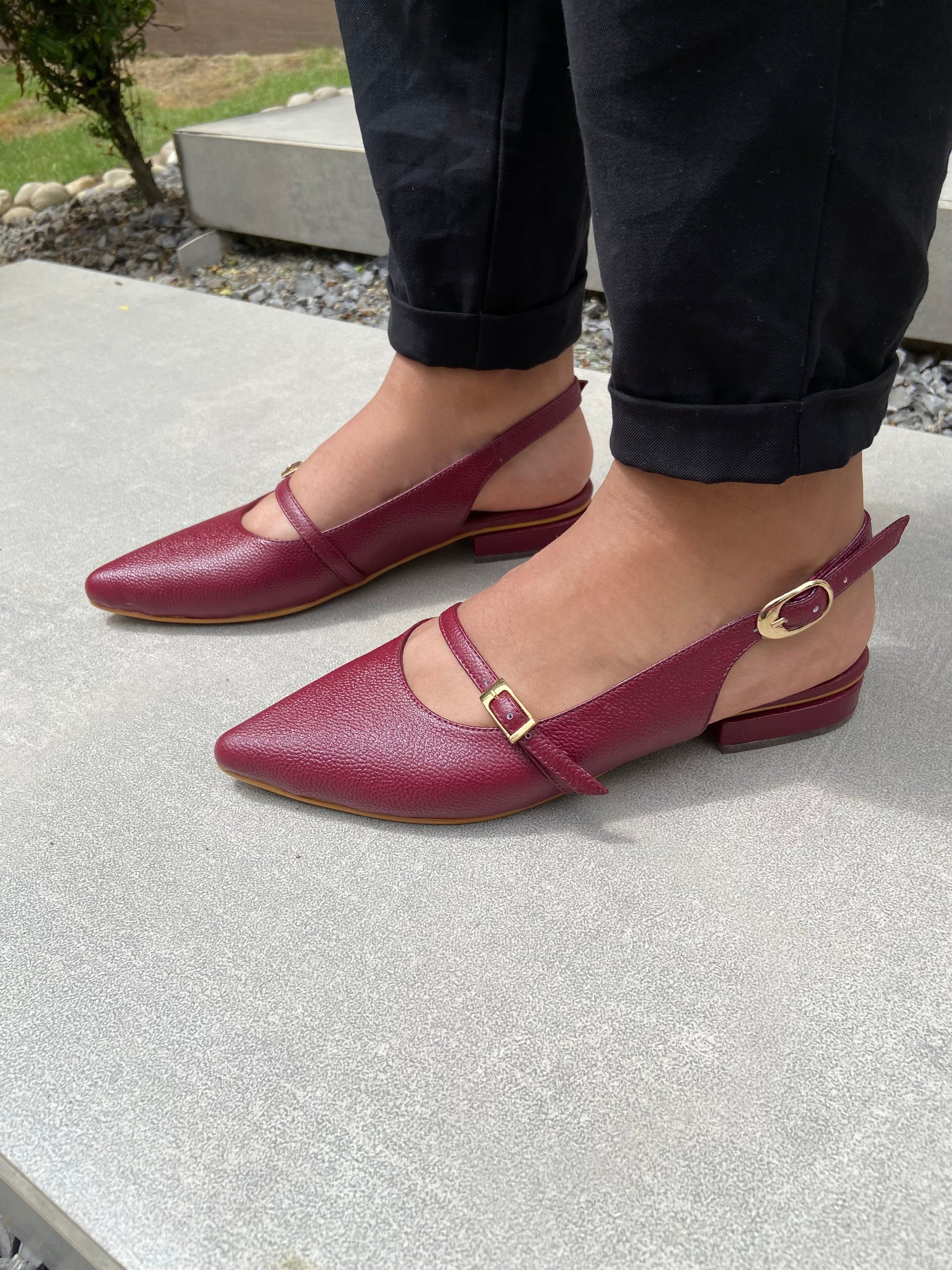Baletas elaboradas en 100% cuero, con un tacón en altura 1 1/2. Su detalle de la hebilla en la capellada lo hace muy delicado y brinda un ajuste perfecto.