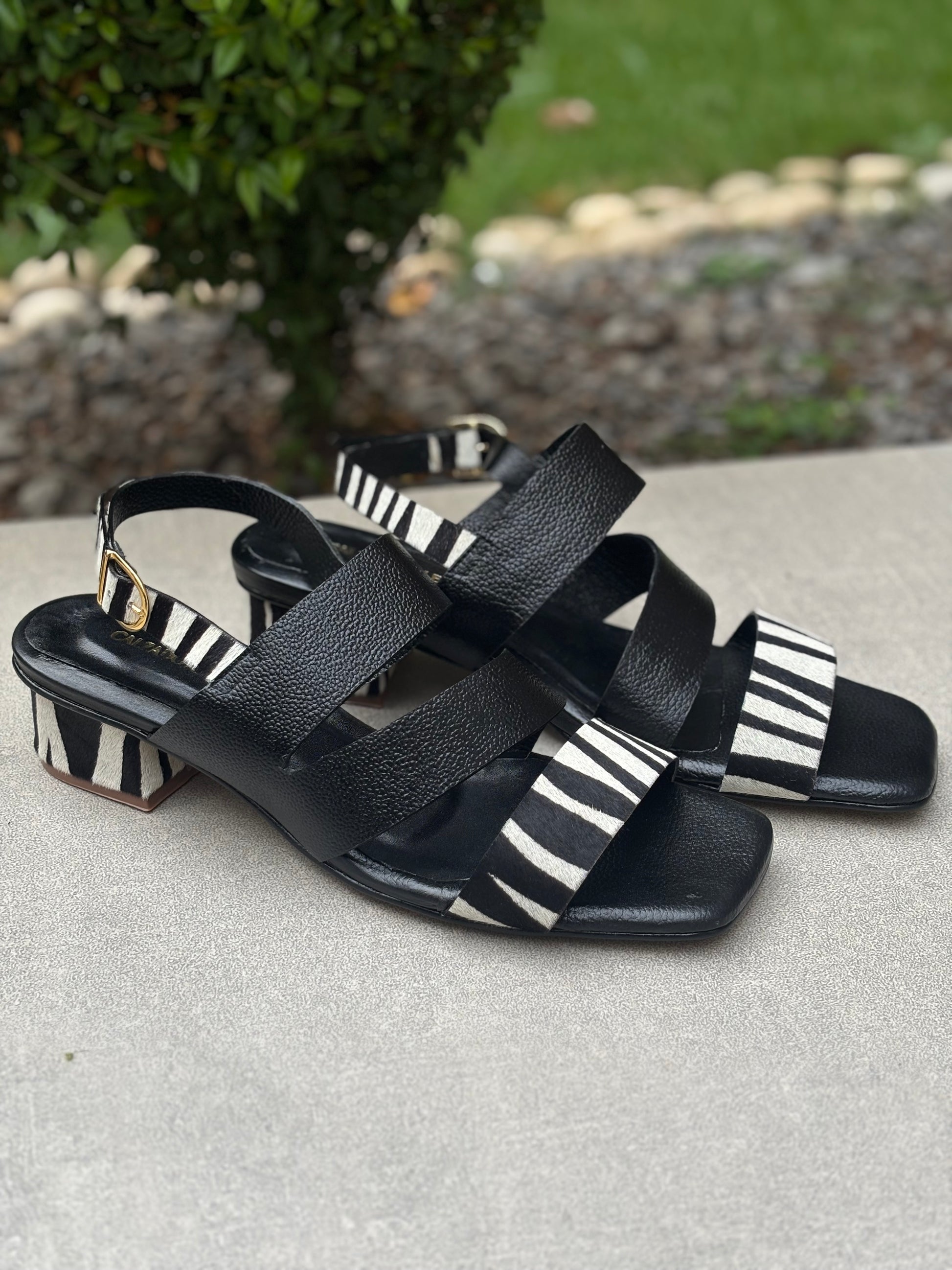 Estas sandalias son la combinación perfecta entre la elegancia y sofisticación, su cuero cebra le da ese diferencial 🖤🤍Son de altura 3 1/2, muy cómodas.
